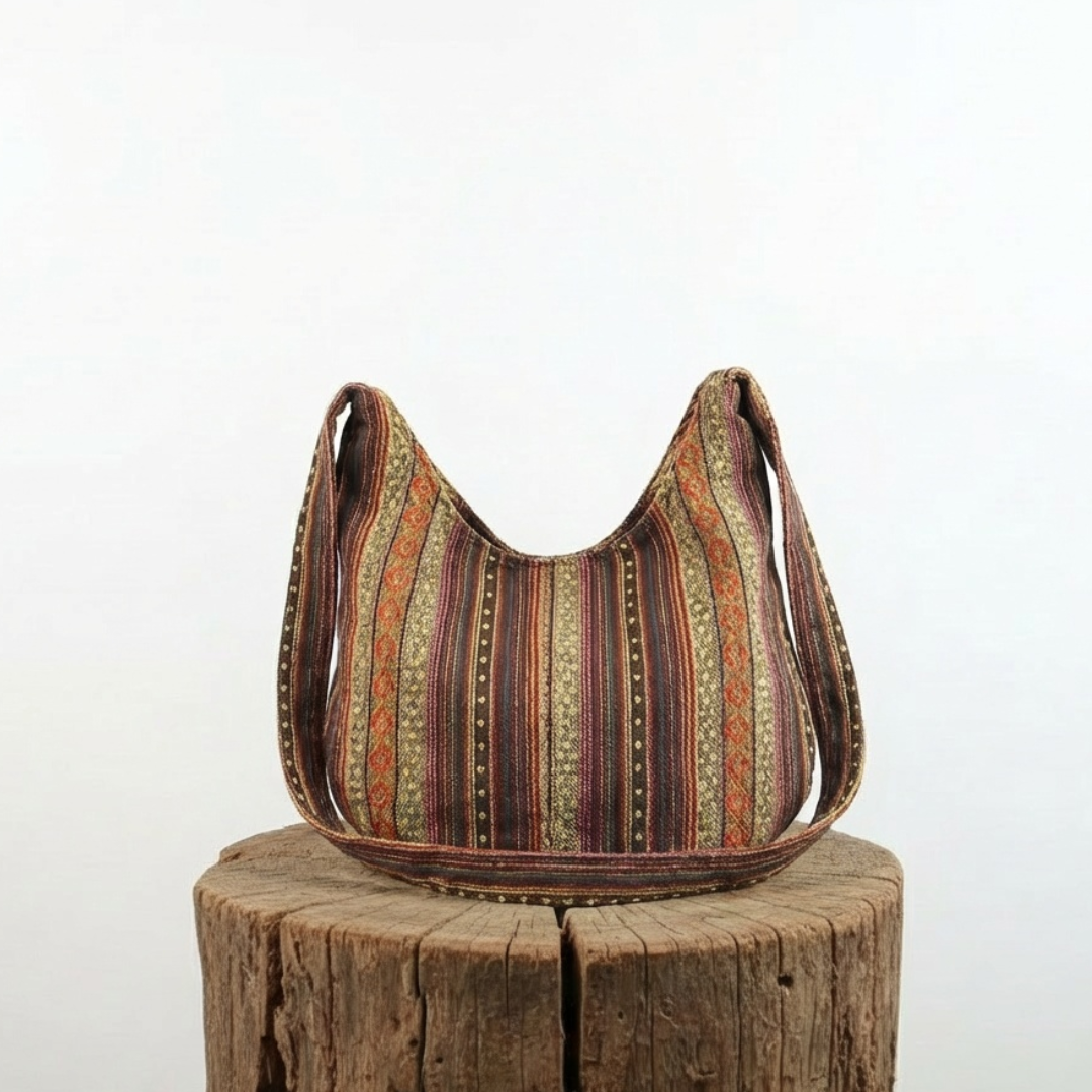 Cómodo de llevar: Con su correa ajustable, El espíritu bohemio de Maya se puede llevar cómodamente al hombro o cruzado. Su ligereza y equilibrio lo hacen ideal para llevarlo todo el día sin molestias.