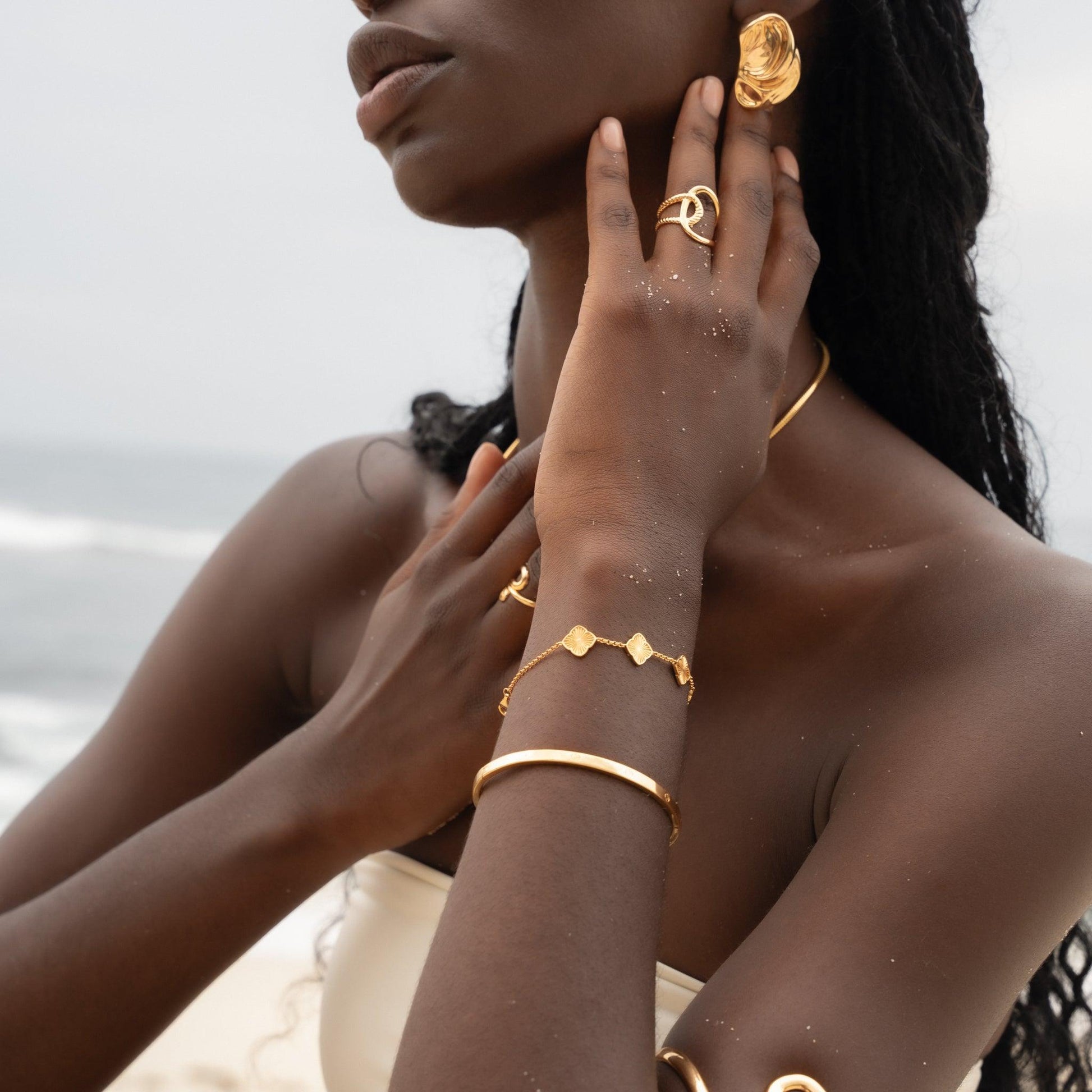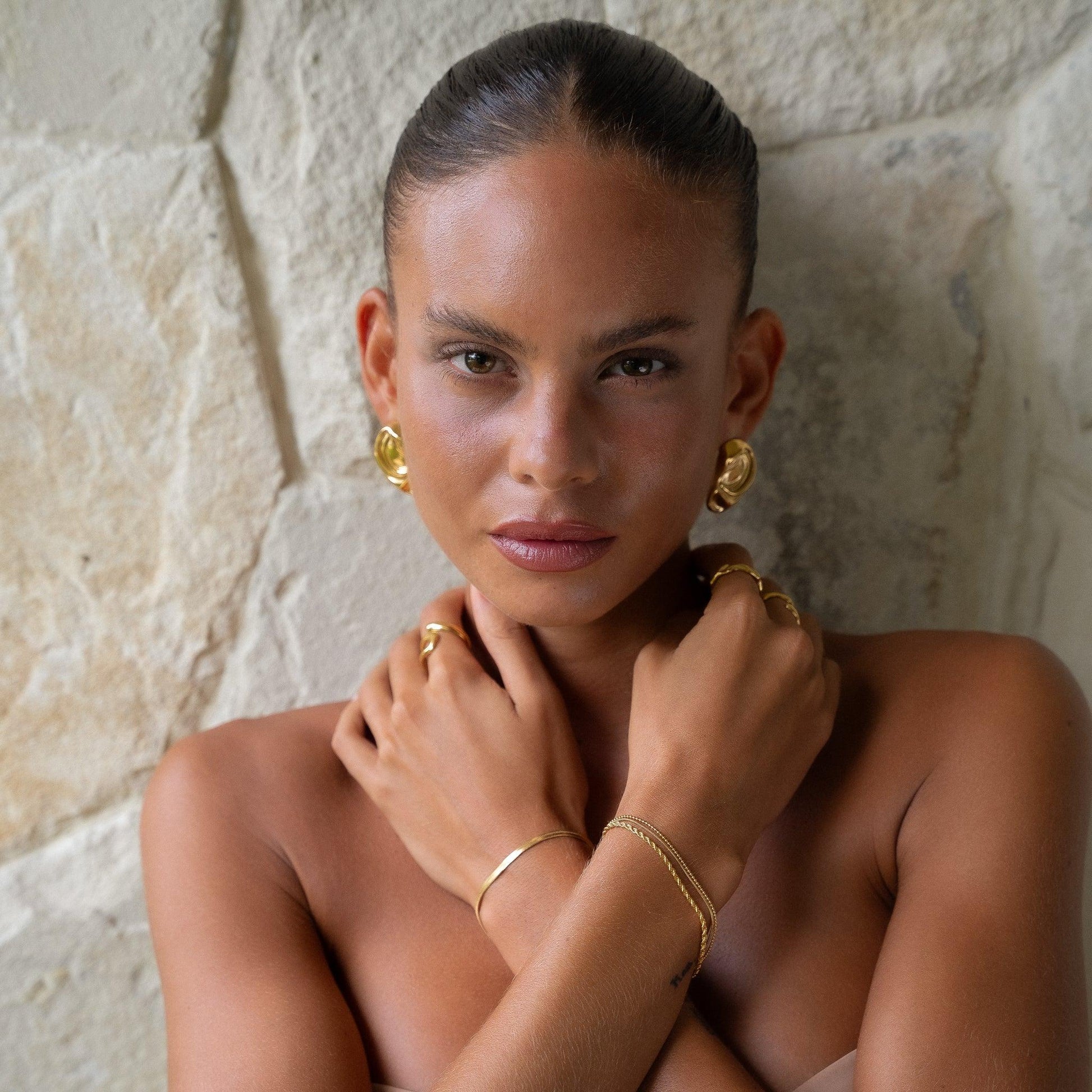 Belleza refinada, inspirada en la naturaleza. Con sus elegantes contornos ondulados, estos pendientes de guijarros capturan el espíritu de la arena y el mar en cada detalle. Llévalos solos para dar un toque de elegancia refinada o combínalos para crear tu propio estilo personal.