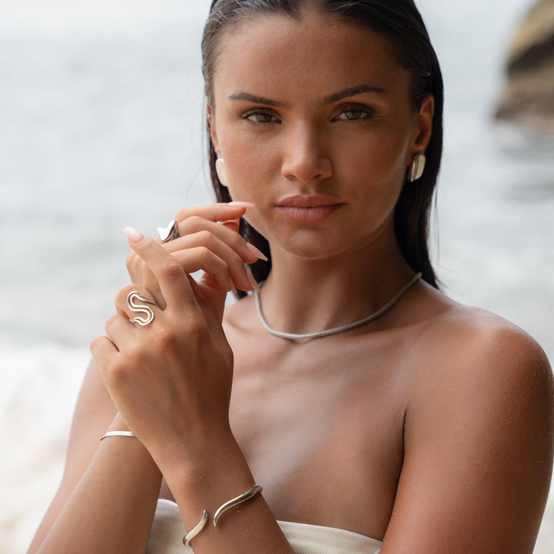 Descubre los pendientes Tidal Gleam, con una silueta geométrica similar a un espejo y un acabado muy brillante. Fabricados en latón chapado en oro o plata de primera calidad, recuerdan el reflejo de la luz de la luna sobre las olas, lo que los convierte en el complemento perfecto para realzar cualquier conjunto.