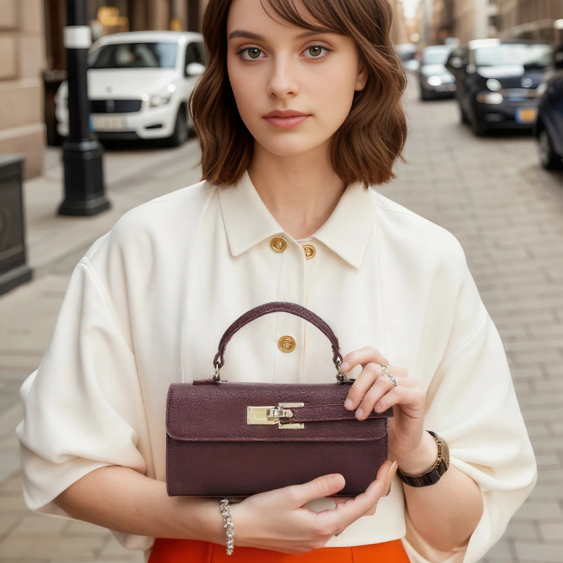 Sofisticación y estilo en un solo accesorio. Este bolso estructurado es la combinación perfecta entre elegancia y funcionalidad. Fabricado en alta calidad en un tono borgoña profundo, destaca por su diseño minimalista y su cierre metálico dorado, que aporta un toque de lujo. Ideal para eventos formales, noches especiales o para complementar tu estilo diario con un aire sofisticado.
